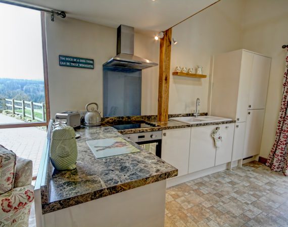 Valley View has it’s own separate entrance and car parking area, in addition a private patio seating area complete with Jacuzzi®. This is a spacious holiday cottage, the kitchen, shower room and living room are located on the ground floor and luxurious King Size bedroom on the mezzanine floor above with stunning panoramic views out across the adjacent valley and forest through a large feature two story window. The cottage features Air source underfloor heating throughout, Air source heating is sustainable, and environmentally friendly. This cottage features free WiFi, a flat screen TV’s with Sky Freeview, DVD player, Radio/CD player. Fully fitted kitchen include electric hob, fan oven, fridge freezer, dishwasher, microwave, toaster, kettle & washing machine. Spacious living room with further stunning panoramic views out across the valley. All linen including bed sheets, bath towels, hand towels and kitchen towels are supplied.